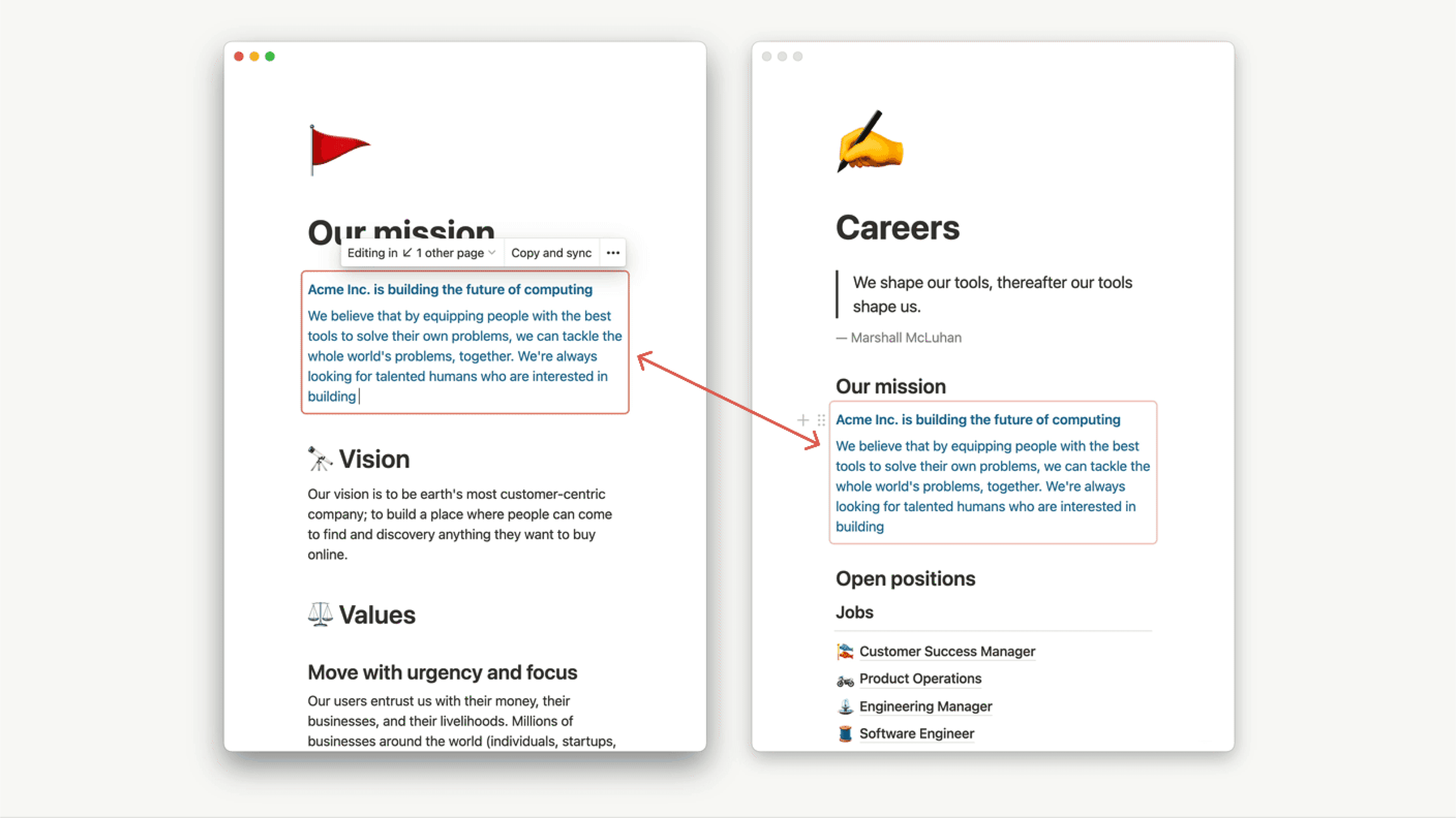 Any content you add to Notion can be duplicated or deleted with a couple clicks, whether that's an image, embed, page, or database. And if you ever get rid of content and need to get that work back — we got you covered on that too 🖇